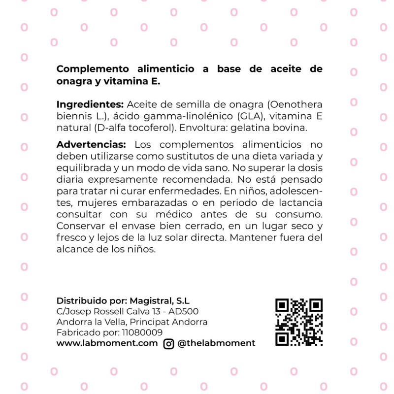 En LabMoment seleccionamos ingredientes de alta calidad para ofrecerte un producto eficaz, bien tolerado y pensado para el bienestar de la mujer. Nuestra fórmula combina la acción hormonal del GLA con el poder antioxidante de la vitamina E, ofreciendo un apoyo completo a la salud femenina desde el interior.