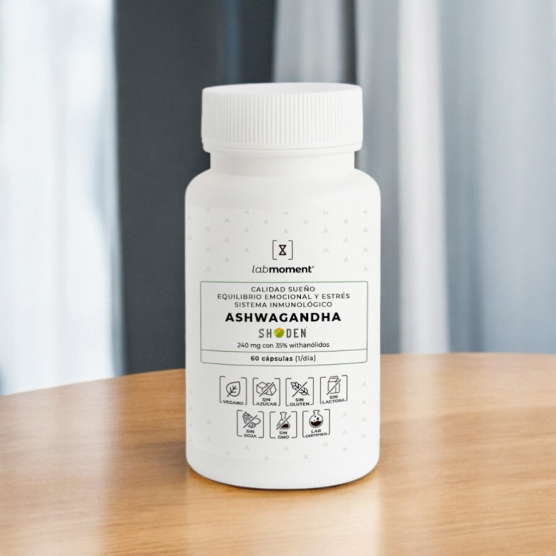 El estrés crónico, la fatiga mental y los desequilibrios hormonales afectan cada vez más nuestro bienestar diario. Por eso, en LabMoment hemos desarrollado un suplemento premium con Ashwagandha Shoden®, un extracto clínicamente validado que actúa como adaptógeno natural para mejorar el descanso, reducir el cortisol y equilibrar el sistema hormonal de forma segura y eficaz.