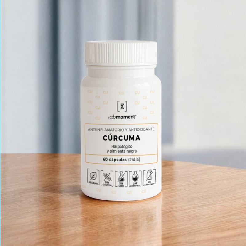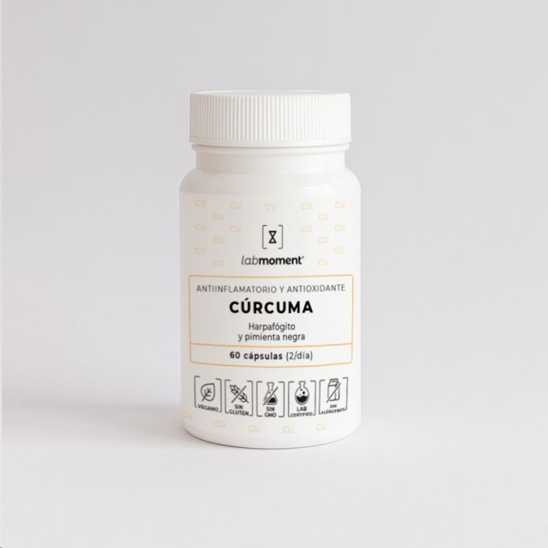 Cúrcuma con Pimienta Negra de Labmoment® es un suplemento natural formulado para reducir la inflamación, proteger las células del estrés oxidativo y mejorar la salud articular. Esta combinación de ingredientes activos de alta calidad incluye extracto de cúrcuma estandarizado al 95% en curcuminoides, pimienta negra (95% piperina) para mejorar la absorción, vitamina C antioxidante y garra del diablo, conocida por su acción antiinflamatoria en articulaciones.