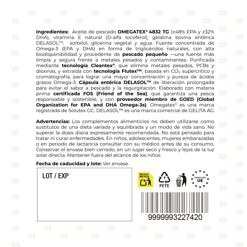 La cantidad diaria (800 mg de EPA+DHA) cumple con las recomendaciones de la EFSA para el mantenimiento de la función cardiovascular y el control de triglicéridos leves.